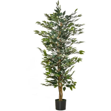 Ajoutez une touche de vert dans votre salon, bureau, entrée, terrasse avec ce splendide ficus artificiel. Avec ses 1008 denses feuilles et sa hauteur de 1,50 m, cette plante artificielle vous apportera un réalisme parfait en ajoutant une touche d’exotisme à l’espace intérieur/extérieur de votre choix. Caractéristiques : – Ficus artificiel hauteur 1,50 m, idéal à installer dans l’espace intérieur/extérieur de votre choix : salon, chambre, bureau, jardin, patio, véranda, terrasse, etc… – Fabriqué en matériaux de qualité supérieure, non toxique et anti-moisissure – Tronc et liane plus vrai que nature ! Branches et 1008 feuilles en matière plastique PEVA avec procédé de teinture haut de gamme afin de rendre le produit plus naturel et réel – Branches pliables manuellement afin d’ajuster sa forme à votre besoin (décoration, brise-vue, etc…) – Pot inclus stable avec du ciment et revêtement imitation mousse de lichen – Tronc, branches, liane grand réalisme – Très facile à entretenir et ne necessite pas d’arrosage ! – Utilisation immédiate, aucun montage nécessaire Spécifications : – Couleurs principales : vert et marron (ficus), noir (pot inclus) – Matériaux principaux : PE, PEVA, ciment, PP – Hauteur : 1,50 m – Dim. pot : Ø 17 x 14,5H cm – Nombre de feuilles : 1008 – Type d’arbre : ficus – Livraison effectuée en un colis -Réf. : 830-452