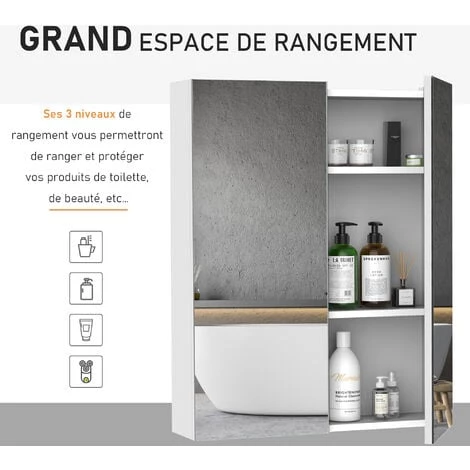 Cette armoire a miroir en MDF a fermeture de porte tampon, est la reponse a vos questions de rangements et d’espaces. Pratique pour votre interieur, salle de bain, , elle revet d’une stabilite et d’une qualite incontestable . Votre espace sera desormais illuminer, grace a cette armoire.