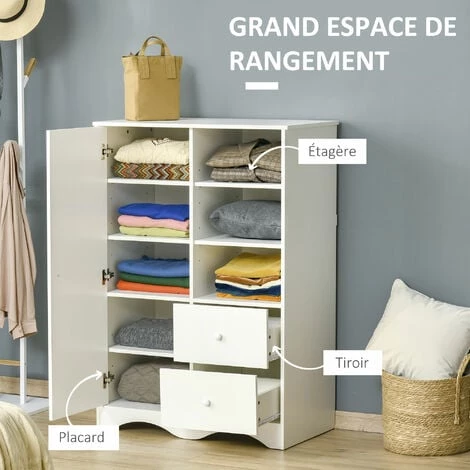 – Armoire meuble de rangement au design sobre et moderne coloris blanc