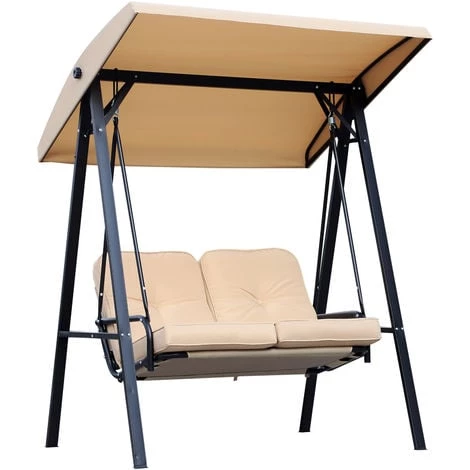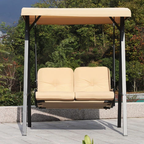 Cette magnifique balancelle de jardin 2 places grand confort sera idéale pour vous détendre et faire un break au soleil ou à l’ombre. Disposant de coussins d’assise et de dossier, d’accoudoirs et d’un toit pare-soleil, vous pourrez tranquillement et confortablement lire un livre ou discuter. Le meilleur atout repos et détente pour votre jardin, terrasse ou balcon. Caractéristiques : – Balancelle de jardin 2 places style néo-rétro très tendance – Balancelle grand confort : coussins d’assise et de dossier rembourrages respectifs 10 et 8 cm fournis – Revêtement des coussins en polyester imperméabilisé – Châssis tubulaire en acier robuste époxy anticorrosion – Toit pare-soleil en polyester haute densité 200 g/m² – Montage facile à l’aide d’un manuel d’assemblage illustré Spécifications : – Couleurs principales : sable, noir – Matériaux principaux : acier époxy anticorrosion, polyester, mousse de rembourrage – Dimensions totales : 138L x 106l x 174H cm – Dimensions de chaque siège : 56L x 51l cm – Hauteur d’assise : 47 cm – Charge max. recommandée : 220 Kg – Réf. : 01-0891
