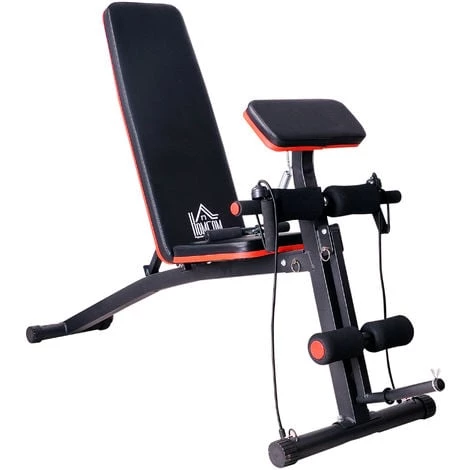 Soyez le premier à laisser votre avis sur “HOMCOM Banc De Musculation Pliable Inclinable Réglable 160L X 53l X 106H Cm Sangles élastiques + Support Haltères Inclus Acier Noir Rouge” Annuler la réponse