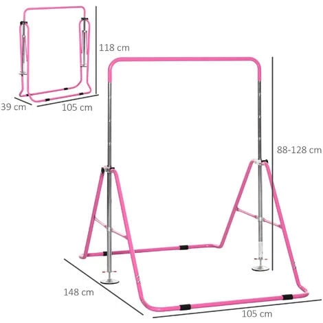 La barre fixe est fréquemment considérée comme l’agrès le plus spectaculaire de la gymnastique artistique grâce à la haute voltige, les lâcher de barres et les sorties parfois périlleuses. Cette ensemble barre fixe de hauteur réglable 4 niveaux de 88 à 128 cm vous permettra de vous entrainer et progresser en toute sécurité.