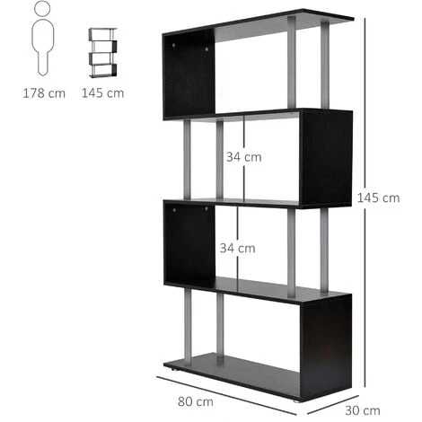 Cette étagère de rangement est idéal pour votre salon, chambre, hall d’entrée, etc. Sa taille est idéale pour y ranger des livres, bibelots, etc. sa silhouette avant- gardoise en S apportera un cote chic et raffine a votre intérieur. Caractéristiques: – Taille adaptée pour y ranger des livres, bibelots, etc. – Epure et moderne d’apparence, s’intégrera facilement dans votre maison Spécifications: – Couleur: noir – Dimensions totales: 80x30x145cm (LxlxH) – Matériaux principaux: panneaux de particules et acier – Réf: 02- 0600