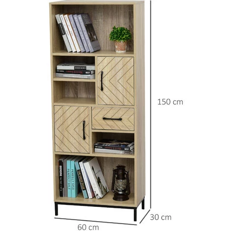Cette splendide bibliothèque style contemporain motif graphique apportera une ambiance moderne cosy très chaleureuse à l’espace intérieur de votre choix : salon, chambre, bureau, etc… Offrant un grand espace de rangement divisé en 2 étagères, 3 niches, 2 placards porte et tiroir, vous pourrez mettre en valeur vos livres, CD, DVD, Blu ray et décorations.