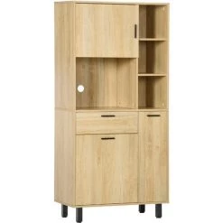 Cette jolie armoire de cuisine sur pied aspect bois clair ajoutera une touche de raffinement supplémentaire à votre intérieur. Disposant de nombreux rangements haut et bas (3 portes, 4 niches, tiroir), cette armoire vous sera très pratique d’utilisation pour devenir rapidement indispensable au quotidien.