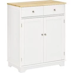 Ce splendide buffet blanc avec plateau en bois d’hévéa apportera une ambiance cosy nordique très chaleureuse à l’espace intérieur de votre choix : salon, cuisine, etc. Offrant un grand espace de rangement grâce à son placard double porte avec étagère réglable et à ses 2 tiroirs coulissants, vous pourrez y placer de la vaisselle, du petit-électroménager et bien d’autre encore.