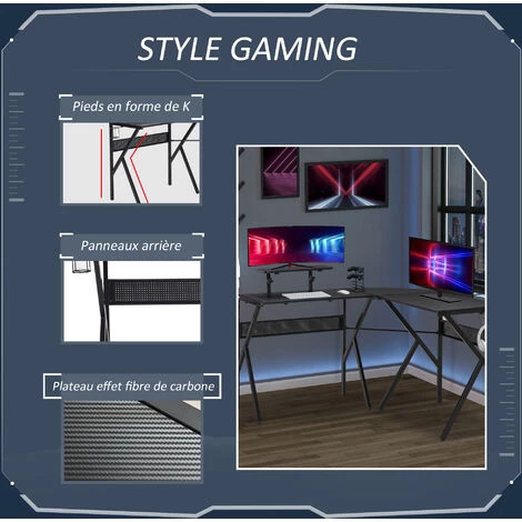 – Bureau gaming d’angle design contemporain avec texture élégante en fibre de carbone idéal pour ajouter une touche de modernité et d’élégance dans votre chambre ou bureau