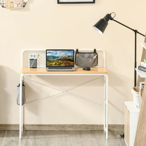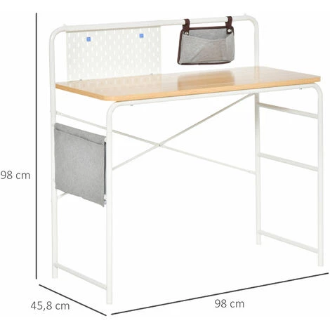 Fonctionnel et ultra tendance, ce bureau en métal blanc et panneaux de particules aspect bois clair est idéal pour personnaliser votre bureau ou chambre. Il ajoutera une touche de modernité à votre intérieur et sera très pratique à utiliser au quotidien grâce à ses pochettes de rangement et à son panneau blanc sur lequel vous pourrez coller des mémos, photos, etc.