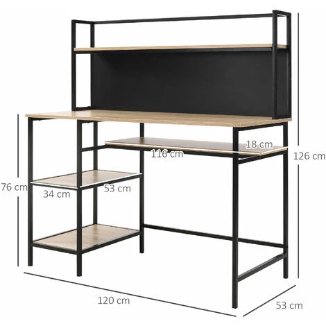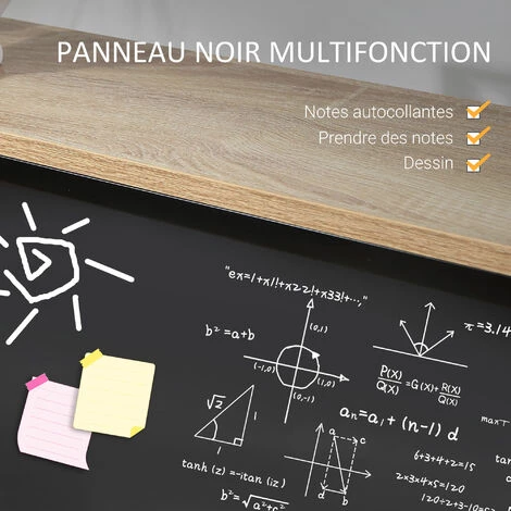 – Multi-rangements : grand plateau de travail, 4 étagères, panneau noir