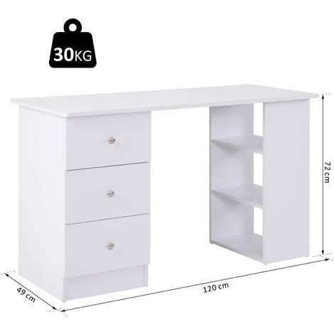 Ce magnifique bureau droit blanc multi-rangements doté de 3 tiroirs, de 2 étagères, et d’un grand plateau de travail vous permettra de travailler dans les meilleures conditions.