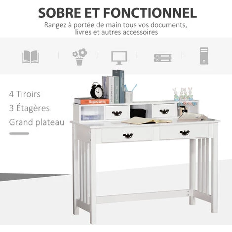 Soyez le premier à laisser votre avis sur “HOMCOM Bureau Secrétaire Style Néo-rétro Dim. 116L X 47l X 93H Cm 4 Tiroirs Poignées Baroques + 3 Niches MDF Blanc” Annuler la réponse