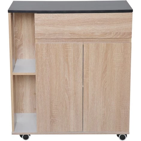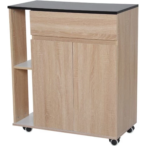 – Desserte multi-rangements : placard double portes avec étagère, tiroir coulissant, grand plateau, 2 étagères latérales
