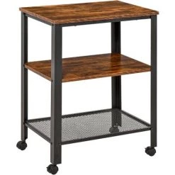 Le style Vintage industriel de cette desserte rendra votre salon-cuisine plus raffiné et plus élégant. Ce meuble vous permettra de ranger et déplacer plus facilement vos couverts, assiettes, aliments, etc… grâce à son plateau et 2 étagères sous-jacentes. La structure en panneaux de particules et en métal confère une certaine solidité à la desserte pour un usage pérenne en tout confort.