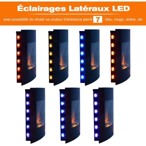 Cette superbe cheminée électrique murale de style avant-gardiste avec lumières latérales LED et effets flammes vous permettra de créer une ambiance cocooning et romantique unique dans votre salon ou chambre. Son design, sa chaleur restituée, sa douce lumière LED mutlicolore et ses effets flammes vous feront apprécier les soirées d’hiver au pied du feu !
