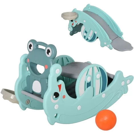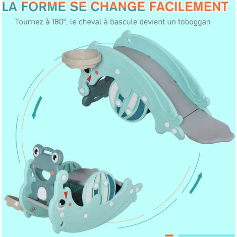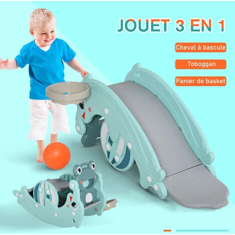 – Fonction 3 en 1, peut être utilisée comme cheval à bascule, toboggan et panier de basket-ball