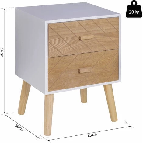 Description : Ajoutez une touche chaleureuse scandinave à votre intérieur en intégrant ce magnifique meuble de rangement bicolore blanc et hêtre avec motif graphique. Equipé de plusieurs tiroirs, vous pourrez y ranger de nombreuses affaires. Caractéristiques : – Meuble design scandinave idéal pour ajouter une touche supplémentaire chaleureuse à votre intérieur – Meuble de rangement compact à intégrer dans l’espace de votre choix : salon, entrée, chambre, bureau, etc… – Style scandinave bicolore hêtre clair et blanc avec pieds effilés et inclinés très élégants – Multi-rangements : plusieurs tiroirs indépendants, rangement compartimenté très pratique – Matériaux robustes en bois massif de pin et MDF pour un usage pérenne – Motif graphique diagonale sur chaque façade de tiroir (revêtement mélaminé imitation veinage bois de hêtre) – Montage rapide et facile à l’aide du manuel d’assemblage illustré Spécifications : – Couleurs principales : blanc et bois de hêtre – Matériaux principaux : bois massif de pin, MDF – Dimensions totales : 40L x 30l x 75H cm ou 40L x 30l x56H cm (suivant modèle choisi) – Dimensions rangement interne tiroirs : 36L x 23l x 11H cm ou 36L x 23l x 14H cm (suivant modèle choisi) – Charge max. recommandée : 20 Kg – Livraison effectuée en un colis – Réf. : 831-216/216V01