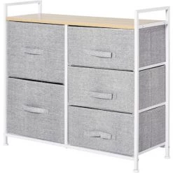 – 5 tiroirs en lin amovibles et pliables de 2 tailles différentes offrent un rangement pour de nombreux articles ménagers