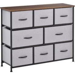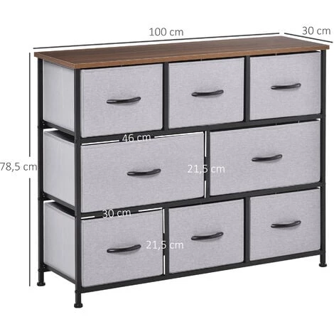 Cette commode de rangement en tissu, métal et MDF classe E1 à 8 tiroirs offre un grand espace de rangement. Elle s’adapte très bien dans n’importe quelle pièce de la maison, apportant ainsi un espace de stockage supplémentaire. 8 tiroirs coulissants de 2 tailles différentes offrent un espace varié pour les accessoires et les petits articles, parfaits pour ranger les vêtements, les draps, les chaussures afin de réduire l’encombrement. Les tiroirs de la commode peuvent être repliés lorsqu’ils ne sont pas utilisés et elle dispose d’une conception anti-basculement pour plus de sécurité.