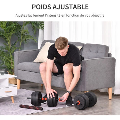 – Ensemble d’haltères courtes (total de 25 Kg) : c’est la solution peu encombrante pour un entraînement musculaire efficace à la maison !