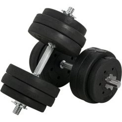 Avec cet ensemble d’haltères courtes (total de 30 Kg), vous disposez d’une sélection illimitée d’exercices de musculation pour un entraînement efficace à la maison ! Caractéristiques : – Ensemble d’haltères courtes (total de 30 Kg) : c’est la solution peu encombrante pour un entraînement musculaire efficace à la maison ! – Ensemble de 14 pièces composé de 8 disques de 2,5 Kg, 4 disques de 1,5 Kg, 2 barres d’haltère + 4 bagues de serrage – Haltères avec poignées antidérapantes offrant un soutien optimal – Les plaques de poids peuvent être solidement fixées aux haltères à l’aide des bagues de serrage – Disques avec revêtement PU (remplissage sable) : minimise le risque de blessure et de dégradation de votre sol – Nombreuses possibilités d’ajustements de poids qu’il s’agisse d’exercices pour tout le corps ou d’exercices d’isolation Spécifications : – Couleur : noir – Matériaux principaux : PU, acier – Dim. totales : 43L x 18l x 7,5H cm – Dim. disques : Ø 21 x 4H cm (2,5 Kg), Ø 18 x 3H cm (1,5 Kg) – Dim. barre d’haltères : Ø 2,5 x 45l cm – Livraison effectuée en un colis – Réf. : A91-139