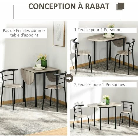 – Ensemble table avec 2 chaises, idéal pour une adaptation parfaite à chacun de vos espaces intérieurs : salle à manger, salon, cuisine, etc.