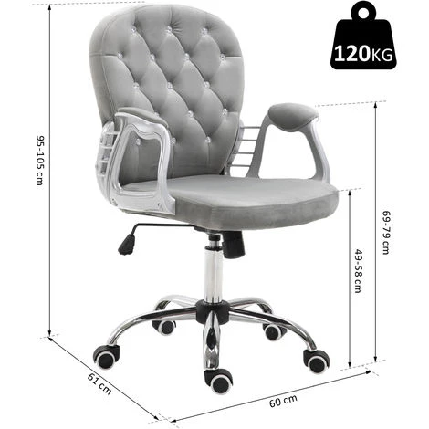 – Fauteuil de bureau design contemporain capitonné avec boutons strass au niveau du dossier