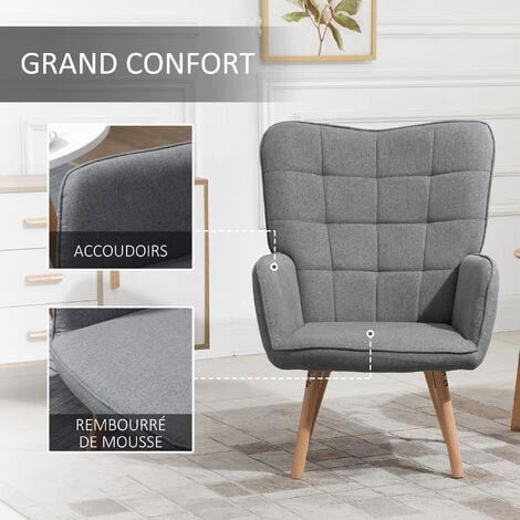 – Très confortable avec son assise moelleuse, son dossier haut, ses accoudoirs rembourrĂ©s et son revĂŞtement aspect lin agrĂ©able au toucher, il est indispensable pour vos instants dĂ©tente !