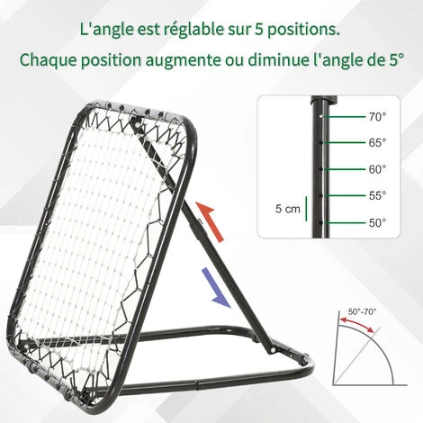 Ce filet de rebond de football est le cadeau idéal à offrir ou à s’offrir pour tout amateur ou professionnel du ballon rond. Pliable, facile à transporter, le filet peut être installé et démonté très facilement sans efforts. Sa fonction d’inclinaison réglable à 5 niveaux vous permettra de vous adonner aux joies du football avec plaisir !