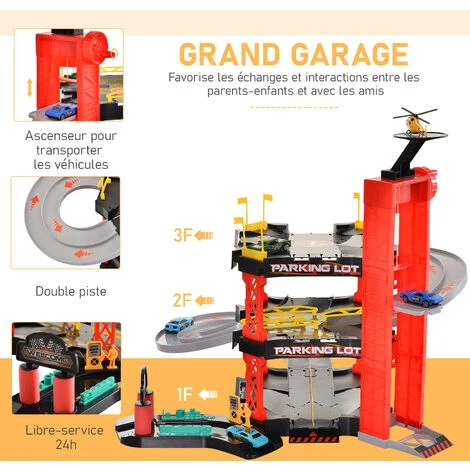 Grâce à ce garage pour voitures, vos enfants pourrons manipuler les 5 véhicules inclus à travers les 3 étages de ce jouet. A vos marques, prêts, partez