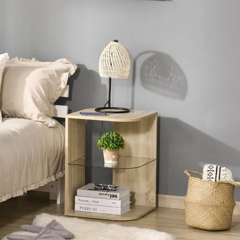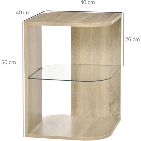 Cette magnifique table basse d’appoint style contemporain mélant l’aspect bois de chêne clair et verre trempé apportera une touche d’élégance supplémentaire à votre intérieur. Sa taille compacte et sa légèreté vous permettront de la déplacer à votre guise et de l’utiliser suivant vos besoins : table basse, bout de canapé, guéridon, etc… Caractéristiques : – Table basse d’appoint style contemporain mélant l’aspect bois de chêne clair et verre trempé – Idéale pour ajouter une touche d’originalité élégante supplémentaire à votre intérieur – Lignes arrondies épurées : véritable atout charme – Table compacte et légère, facile à déplacer suivant vos besoins et envies : tables basses type tables à café, bouts de canapé, guéridon, ou même table de nuit – Matériaux de qualité : conception, fabrication en panneaux de particules classe E1 robustes (charge max. recommandée de 15 Kg) et verre trempé 5 mm – Montage ultra-rapide, installation et utilisation quasi-immédiate ! Spécifications : – Coloris : aspect bois de chêne clair – Matériaux principaux : panneaux de particules classe E1, verre trempé – Dim. totales : 40L x 40l x 56H cm – Dim. étagère inférieure : 40L x 40l cm – Dim. étagère en verre : 38,1L x 38,1l cm – Charge max. recommandée : 15 Kg (au total), 2,5 Kg (étagère en verre) – Livraison effectuée en un colis – Réf. : 839-120ND