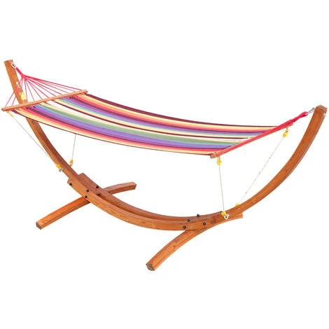– Couleurs : bois de pin (structure), multicolore (hamac)