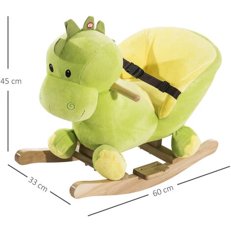 Ce jouet à bascule en peluche dinosaure est idéal pour votre enfant ! A partir de 18 mois (et sous surveillance d’un adulte), il pourra se balancer d’avant en arrière en toute sécurité grâce à sa ceinture de sécurité intégrée sur le rythme musical d’une des 32 chansons qui vous sont proposées. Il fera sans aucun doute, le bonheur de votre enfant.