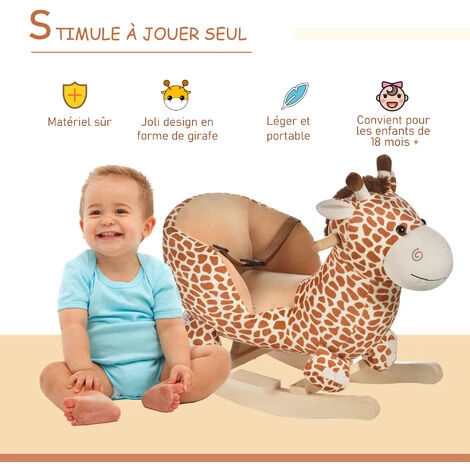 Votre petit (Ă partir de 18 mois et sous surveillance d’un adulte) va dĂ©couvrir les joies du jouet Ă bascule sur ce magnifique girafon ! DotĂ© d’une fonction musicale avec 32 pistes et Ă©quipĂ© d’une ceinture, votre enfant pourra se balancer très facilement de l’avant vers l’arriere en musique et en toute sĂ©curitĂ© ! Il sera, a n’en pas douter, le meilleur compagnon de jeu de votre enfant.