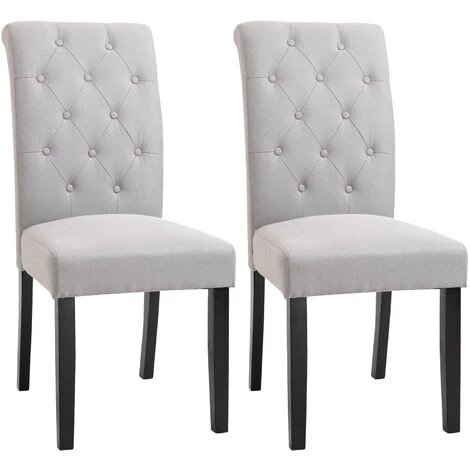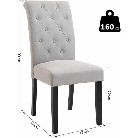 Laissez-vous séduire par le charme zen et cosy de ce superbe lot de 2 chaises style Chesterfield capitonné en tissu de lin gris clair. Sa structure en bois et pieds en bois massif d’hévéa, son épais rembourrage mousse haute densité et son revêtement en tissu de lin vous offriront le plus grand confort. Sa taille et forme compacte vous permettront d’optimiser l’espace de votre pièce.