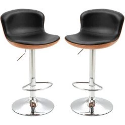 – Lot de 2 tabourets de bar design contemporain avec contraste couleurs imitation bois, noir et chrome très Ă©lĂ©gant idĂ©al pour installation dans votre cuisine, salle Ă manger, etc…