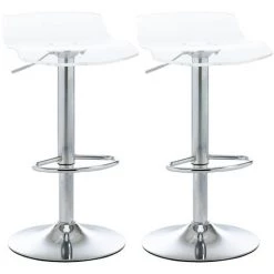 Ce superbe lot de 2 tabourets de bar design contemporain ajoutera une touche d’élégance, raffinement et modernité à votre intérieur. Sobres et épurés, ces tabourets HOMCOM design marient avec simplicité et élégance le métal chromé et l’assise en acrylique transparent. A la fois confortables et design, ces chaises de bar lot de 2 sont dotés d’un joli dossier, ils trouveront une place de choix devant un îlot ou un bar. Caractéristiques : – Lot de 2 tabourets de bar design contemporain – Assise transparente apporte de l’élégance et de la légèreté à votre intérieur – Tabourets réglables en hauteur pas simple action de la manette et activation du vérin à gaz, tabourets pivotants à 360° – Piètement métal chromé avec repose-pieds intégré – La surface lisse est facile à nettoyer – Tabourets robustes, charge max. recommandée de 120 Kg – Montage facile grâce à la notice d’assemblage illustrée fournie Spécifications : – Couleur : transparent – Matériaux principaux : acrylique, métal – Dim. totales : 39L x 39l x 67-87H cm – Dim. de l’assise : 39L x 30l x 62-82H cm – Dim. dossier : 35,5L x 6H cm – Ø piètement : 38 cm – Charge max. recommandée : 120 Kg – Livraison éffectuée en un colis – Réf. : 835-622