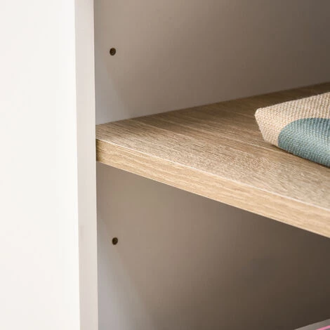 – Meuble bicolore blanc et chêne clair pour une intégration très facile dans l’espace intérieur de votre choix : salon, chambre, salle de jeux