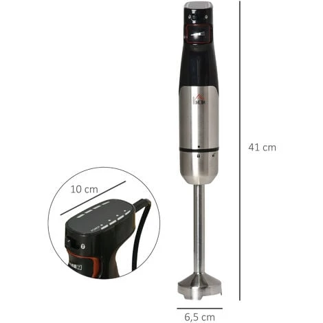 Ce mixeur plongeant 3 en 1 est la solution parfaite si vous adorez cuisiner et afin d’éviter de changer constamment d’appareils. Cet appareil 3 en 1 vous fera gagner du temps et vous permettra de gagner de la place dans vos placards car à lui seul vous pourrez mélanger, hacher, fouetter ou mixer ! Caractéristiques : – Mixeur plongeant 3 en 1, solution parfaite si vous adorez cuisiner et afin d’éviter de changer constamment d’appareils – Utilisation intuitive facile et rapide, idéale pour gagner du temps et de la place dans vos placards – Nombreux accessoires : pied mixeur, fouet multi-brins, bol hachoir pour répondre à tous vos besoins de préparation (mousse au chocolat, confiture, nourriture pour bébé, crème glacée, viande hachée etc…) – Bol Bécher capacité de 800 ml, bol hachoir capacité de 500 ml – Vitesse réglable pour satisfaire toutes vos éxigences – Fonction de verrouillage de sécurité – Les pièces de mélange de la machine sont amovibles et lavables au lave-vaisselle (sauf moteur mixeur) – Taille compacte : utilisation et rangement pratique Spécifications : – Couleurs : noir, acier inox. – Matériaux principaux : ABS, acier inox. – Dim. totales : 10L x 6,5l x 41H cm – Longueur du câble d’alimentation : 1 m – Tension : 220-240 V – Puissance : 1000 W – Certifications normes : CE-EMC, LVD, RoHS – Livraison effectuée en un colis – Réf. : 800-103V90