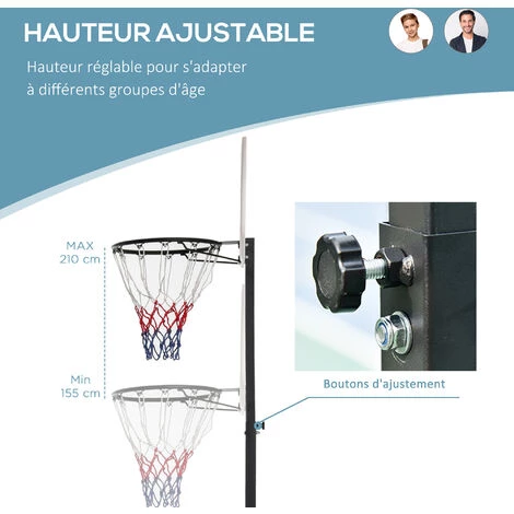 – Hauteur du panier réglable de 1,9 m jusqu’à 2,5 m