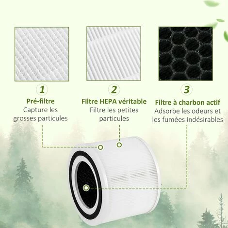 – Triple niveau de filtre : pré-filtre, HEPA, charbon actif