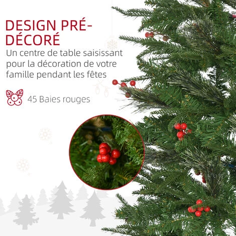 Ce superbe sapin de Noël artificiel vous aidera à créer une atmosphère féerique ! Équipé de 746 branches avec épines plus vrai que nature et 45 baies rouges, ce sapin sera du plus bel effet. En un clin d’œil, vous l’aurez installé ce qui ravira petits et grands !