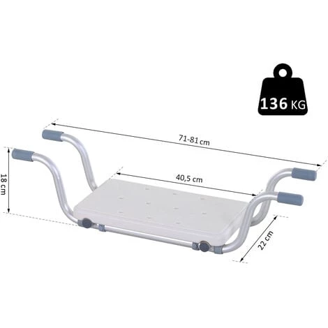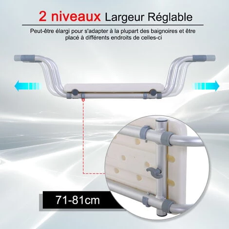Ce siĂšge de bain suspendu aux bords de la baignoire surĂ©lĂšvera votre position d’assise dans votre baignoire et facilitera votre entrĂ©e et sortie de bain. C’est l’Ă©quipement indispensable pour les personnes ĂągĂ©es, blessĂ©es ou handicapĂ©es. CaractĂ©ristiques : – SiĂšge de bain suspendu idĂ©al pour les personnes ĂągĂ©es, blessĂ©es ou handicapĂ©es – PossibilitĂ© de l’Ă©tendre pour s’adapter Ă la plupart des baignoires – Ă utiliser en complĂ©ment d’une planche de bain ou d’une barre d’appui – ĂquipĂ© d’embouts antidĂ©rapants pour bien protĂ©ger les rebords de votre baignoire et stabiliser le siĂšge – Assise ergonomique en polyĂ©thylĂšne de haute densitĂ© avec perforation pour une meilleure Ă©vacuation de l’eau – ChĂąssis tubulaire en alliage d’aluminium anticorrosion plus rĂ©sistant et robuste – Grande capacitĂ© de charge : maximum recommandĂ© de 136 Kg – Aucun assemblage n’est requis et aucun ajustement nĂ©cessaire, il suffit de positionner le siĂšge lĂ oĂč vous en avez besoin SpĂ©cifications : – Couleurs principales : alu et blanc – MatĂ©riaux principaux : alliage d’aluminium et HDPE – Dim. totales : 71-81L x 22l x 18H cm – Dim. assise : 22L x 40,5l cm – DiamĂštre chĂąssis tubulaire : 22, 25 mm – Certification norme CE – Charge max. recommandĂ©e : 150 Kg – Livraison effectuĂ©e en un colis – RĂ©f. : 713-044