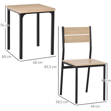 – Dim. chaises : 39,5L x 44l x 83,5H cm (hauteur dossier : 37,5 cm)