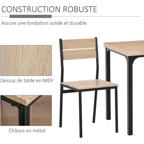 – Ensemble table avec 2 chaises, idéal pour une adaptation parfaite à chacun de vos espaces intérieurs : salle à manger, salon, cuisine, etc…