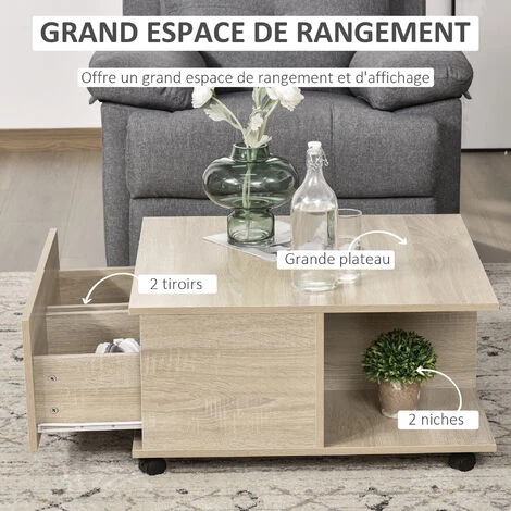 – Table basse sur roulettes dont 2 équipées de freins : mobilité pratique, stabilité optimale
