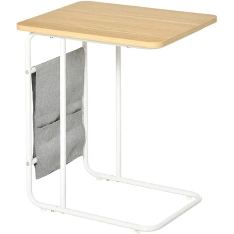 Cette jolie table basse d’appoint rectangulaire en métal époxy anticorrosion blanc avec plateau aspect bois clair apportera une touche d’élégance supplémentaire à votre intérieur ! Sa taille compacte, sa légèreté vous permettront de la déplacer à votre guise et de l’utiliser suivant vos besoins : table basse, bout de canapé, guéridon, etc. Ses 2 pochettes de rangement en tissu gris seront pratiques pour ranger vos télécommandes ou magazines.