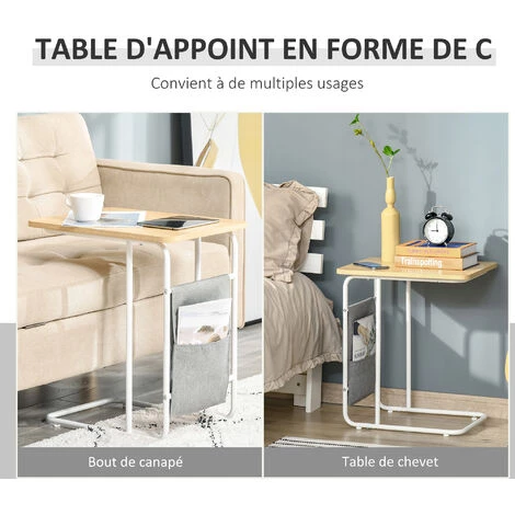 – Jolie table d’appoint aux lignes épurées mélant aspect bois clair et structure en métal blanc, idéale pour le salon, chambre, bureau, etc.