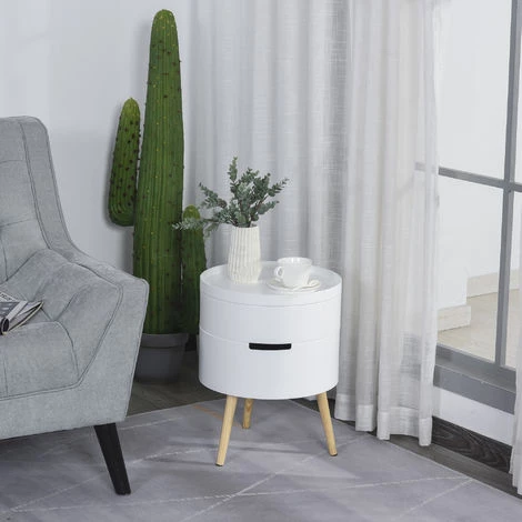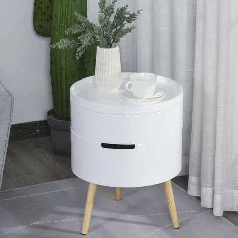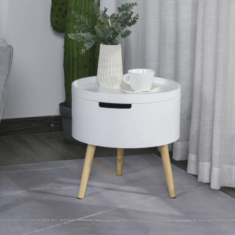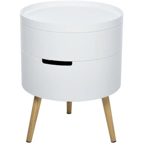 Redorez votre décoration en intégrant cette sublime table d’appoint ronde style scandinave bicolore blanc bois de pin naturel. Equipée de 2 compartiments de rangement, vous pourrez y ranger quelques affaires en toute commodité !