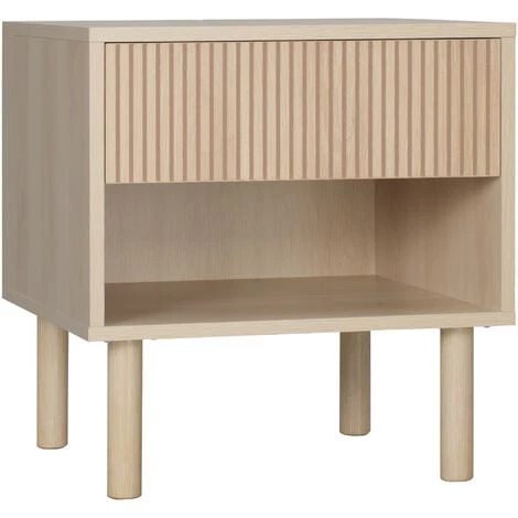 Le design Urban Craft de cette table de chevet rendra votre chambre plus raffinée et plus élégante. Ce meuble vous permet de ranger plus facilement vos affaires de nuit grùce à son tiroir coulissant et sa niche. Dotée de pieds cylindriques, fabriquée en panneaux de particules aspect bois clair, cette table de nuit illuminera votre intérieur et sera trÚs pratique à utiliser au quotidien.