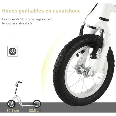 Cette superbe trottinette patinette pour enfants à partir de 5 ans fera la joie de votre bambin ! Équipée de 2 grandes roues avec véritables pneus caoutchouc, d’un guidon réglable en hauteur avec poignée de frein, d’une béquille et d’un plateau anti-dérapant, votre petit garçon ou petite fille pourra découvrir les plaisirs de se déplacer en trottinette en tout confort et sécurité ! Caractéristiques : – Guidon ergonomique de hauteur réglable pour répondre aux besoins des enfants de différentes tailles – Haute sécurité grâce aux deux freinages contrôlés par poignée, peut mieux protéger les enfants – Cadre métallique d’une grande robustesse et les roues en caoutchouc pour un usage pérenne – Béquille latérale pour un usage et rangement pratique – 2 grandes roues pneumatiques pour une utilisation à long terme et un déplacement rapide – Un plateau anti-dérapant est facile pour l’enfant de se tenir debout – Convient aux enfants de plus de 5 ans Spécifications : – 2 couleurs au choix : blanc ou noir – Matériaux principaux : alliage d’aluminium, caoutchouc, PP – Dimensions totales : 120L x 58l x 85-95H cm – Âge recommandé : plus de 5 ans – Certifications normes EN71-1-2-3 – Charge max. recommandée : 100 Kg – Livraison effectuée en un colis – Réf : 371-017WT/BK